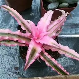 彩叶凤梨 L.B.Sm.) 凤梨科多年生常绿草本。株高25-30厘米,茎短。叶革质,带状,常基生,…