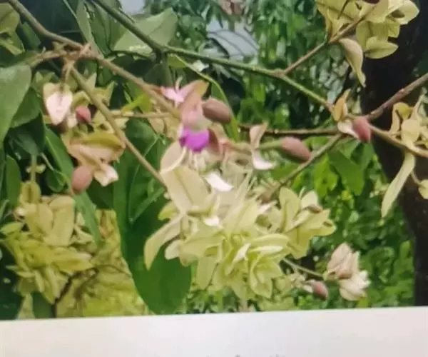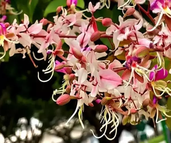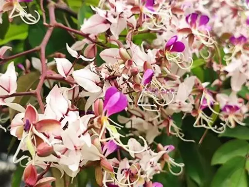 仪花(学名:Lysidice rhodostegia Hance)是豆科,仪花属灌木或小乔木,高可达5m,很少超过10m。小叶片3-5对,纸质,先端尾状渐尖,基部圆钝;侧脉纤细,小叶柄粗短,圆锥花序,总轴、苞片、小苞片均被短疏柔毛;苞片、小苞片粉红色,萼管比萼裂片长,萼裂片长圆形,暗紫红色;花瓣紫红色,子房被毛,花柱细长,荚果倒卵状长圆形,果瓣常成螺旋状卷曲;种子长圆形,褐红色,种皮较薄而脆,6-8月开花;9-11月结果。