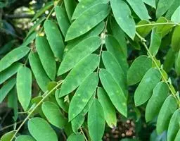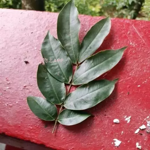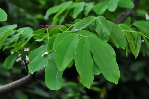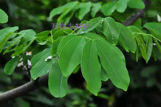 小叶3-5对,纸质,长椭圆形或卵状披针形,长5-16厘米,宽2-6.5厘米,先端尾状渐尖,基部圆钝;侧脉纤细,近平行,两面明显;小叶柄粗短,长2-3毫米。