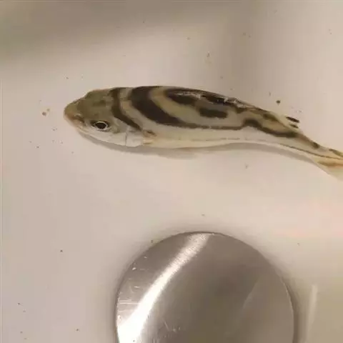吻稍尖。口下位,呈马蹄形。口角须1对。背部灰黑 色,体侧浅黄色,体背有一条较细的黑色纹带,体侧中轴也有一条黑色纹带。尾鳍叉型。