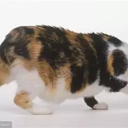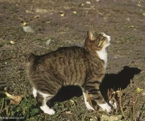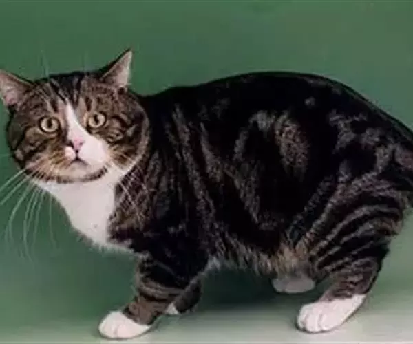 马恩岛猫是一种不寻常的无尾猫品种。它的体形和英国短毛猫相似,但是后腿比前腿长,所以走起路来像兔子。