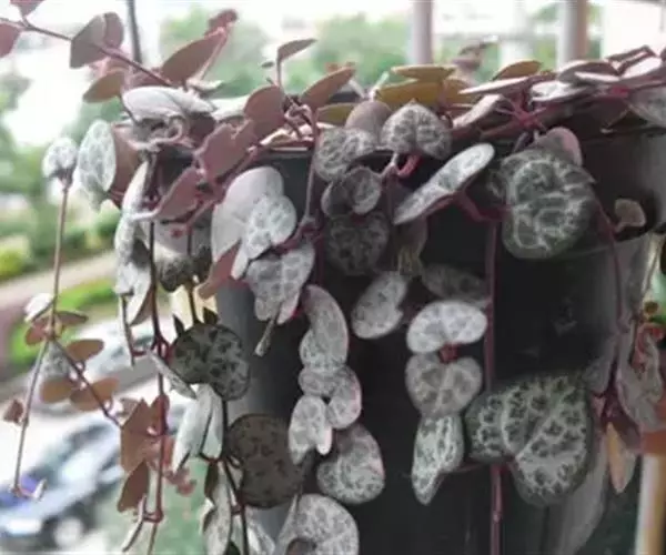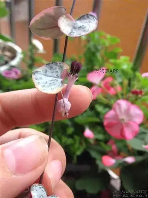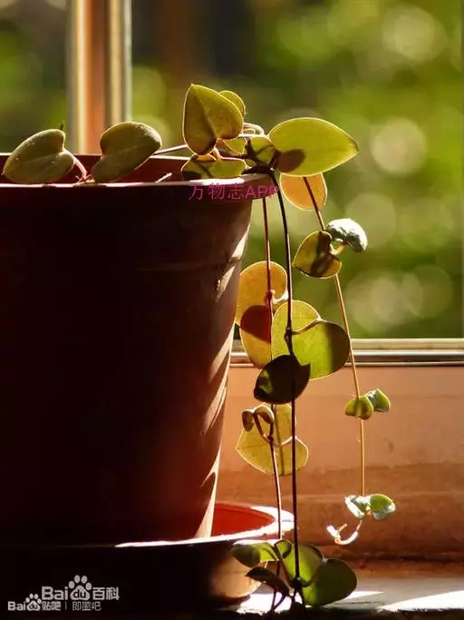 光照:该种性喜散射光,夏季要避免强光照射,否则容易引起叶片灼 开花中的爱之蔓 伤,影响植株生长。 一年中春、秋、冬三季每天可以见二小时左右的晨光,夏季散光即可,但如果养护环境长期过阴而光线不足,则会造成节间易徒长,失去观赏价值。