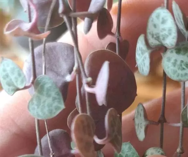 爱之蔓(学名:Ceropegia collaricorona ssp. collaricorona Werderm.)是萝藦科,吊灯花属多肉植物 Ceropegia collaricorona Werderm. 的指名亚种。多年生,植株从带有结节的块茎中生出并匍匐生长,块茎灰色,质地坚硬、有褶皱。从中萌生出数根紫色、线状的匍匐茎。该种会在叶腋处长出圆形块茎,称“零余子”,有贮存养分、水分及繁殖的功用。叶对生,肥厚肉质,呈心形;叶深绿色,叶面上有灰、白色网状花纹,叶背呈紫红色。花朵自叶腋生出,较细长,壶状,为鲜艳的红褐色。花托隆起,紫色。果实羊角状。