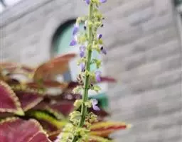 磨盈草,一年生或多年生直立的亚灌木状草本,高达1-2.5米,分枝多,全株均被灰色短柔毛。花期7-10月。常生于海拔800米以下的地带,如平原、海边、砂地、旷野、山坡、河谷及路旁等处。喜温暖湿润和阳光充足的气候,生长适温在25-30℃,不耐寒,一般土壤均能种植,较耐旱,喜肥,在疏松而肥沃的土壤上生长茂盛。