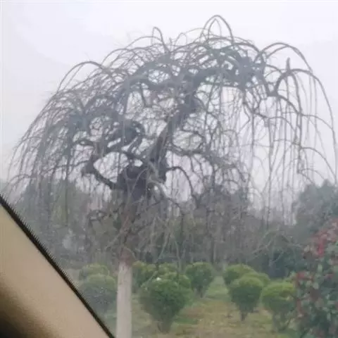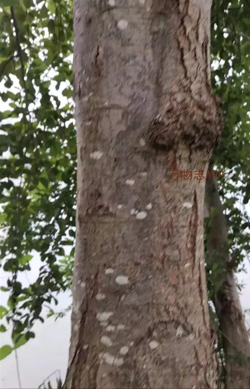 树皮暗灰色,粗糙,不规则纵裂。幼树枝条直立,且被白色毛;老树枝条先端下垂,有时木栓质发达成为瘤状。…