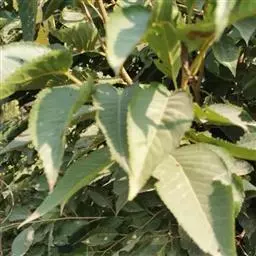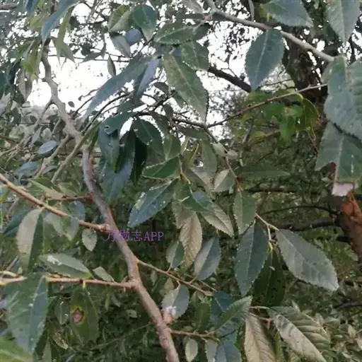 叶质地厚,披针状卵形或窄椭圆形,稀卵形或倒卵形,巾脉两侧长宽不等,长1.7~8(常2.5~5)厘米,宽0.8~3(常1~2)厘米,先端尖或钝,基部偏斜,楔形或一边圆,叶面深绿色,有光泽,除中脉凹陷处有疏柔毛外,余处无毛,侧脉部凹陷,叶背色较浅,幼时被短柔毛,后变无毛或沿脉有疏毛,或脉腋有簇生毛,边缘从基部到先端有钝而整齐的单锯齿,稀重锯齿(如萌发枝的叶),侧脉每边10~15条,细脉在两面均明显,叶柄长2~6毫米,仅上面有毛。