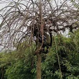 南梦溪 榔榆 千年 古树 包括枝条的取舍、调整控制枝条方向和走势、矫正伸展姿态等。一般从下而上逐枝进行,主枝应与主干角度适宜、分布均匀、上下有一定间距。主枝延长枝留侧芽轻剪,两年左右交叉留芽,使主枝延长枝曲折发展。主枝上侧枝应选长势适中、方向适宜的枝条,使主干与各级主侧枝分布合理、上下错落,侧枝修剪一般留外芽,以利扩大树冠。随着枝条的增粗,及时拆除金属丝,以防“陷丝”。对还未定型的枝条,可攀扎固定形态。