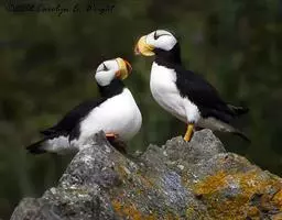 凤头海雀:是鸟纲、鸻形目、海雀科的一种海鸟。体重211-322克,体长18-20厘米。前趾间有蹼膜,…