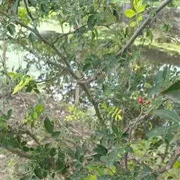 常绿灌木或小乔木。叶椭圆形,两端尖。果扁圆形,朱红色;味甜,可食。产自中国东南部,广东地区大量盆栽。