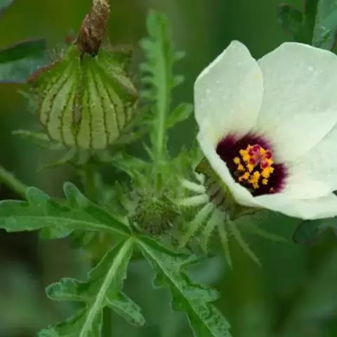 咖啡黄葵 Moench)亦称黄秋葵,是锦葵科一年生草本植物。茎圆柱形,疏生散刺。叶掌状,裂片阔至狭,…