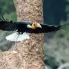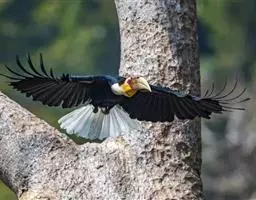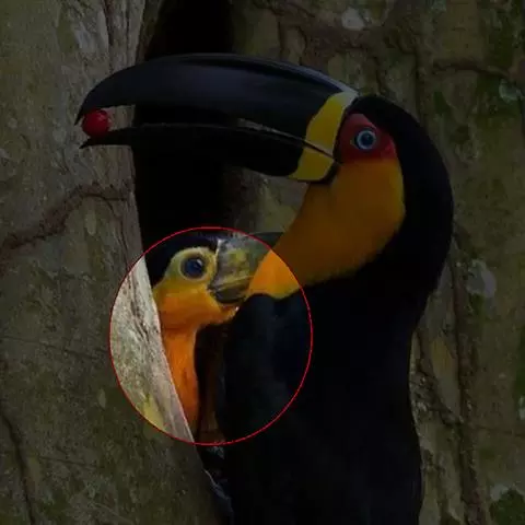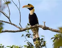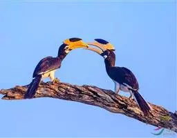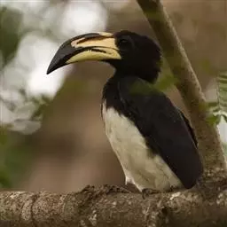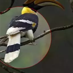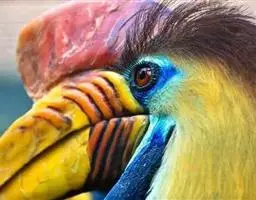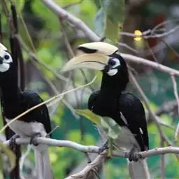 犀鸟是旧大陆的一类热带鸟,属佛法僧目(树栖鸟类的一个目,主要包括佛法僧、翠鸟、戴胜等),犀鸟科。它们的外貌特别引人注目,头骨像头盔,套在突出的喙上面。犀鸟中体型最小的是红喙野村综合研究所鸟,体长约40厘米。最大的大野村综合研究所鸟,身长达160厘米,它是典型的大头、细颈、宽翅膀、长发展巴鸟。羽毛呈褐色或黑色,上面通常都有明显的白色标记。