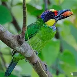 绿拟啄木鸟为鴷形目(Piciformes),须科(Capitonidae),拟啄木属(Megalaima)的一种。形较大拟啄木鸟略小,体长约260mm。头、颈及胸浅褐而具淡黄白色条纹;喉几为淡黄白色;身体余部草绿色。虹膜棕褐色,眼周裸露部黄色;嘴峰角黄色;跗跖和趾角黄色或橙黄色,爪褐色。 国内仅见于云南省的景洪、勐腊、耿马及盈江那邦等地,留鸟。多见单个活动于坝区或村寨附近的高树上,有时也见于龙山林中。食物以果实为主。