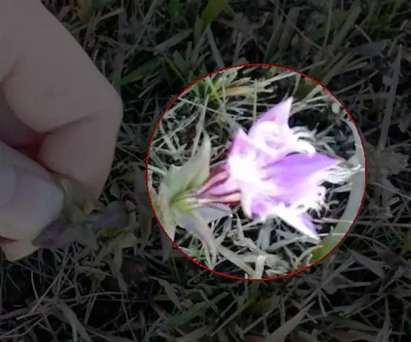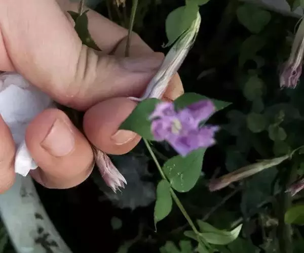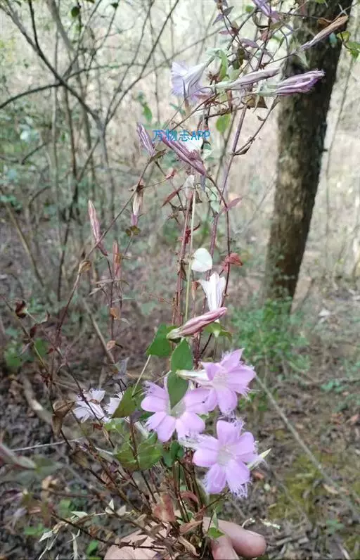 花单生茎顶,无花梗;花萼膜质,有时微带紫色,萼筒长7-13毫米,脉稍突起具狭翅,裂片线状披针形,长5-10毫米,边缘有时疏生睫毛,弯缺圆形;花冠淡红色,上部有紫色纵纹,筒状,上部稍开展,长3-4.5厘米,裂片卵形或卵状三角形,长5-9毫米,宽4-5毫米,先端钝或渐尖,褶宽三角形,比裂片稍短,宽4-5毫米,先端具细长流苏;雄蕊着生于冠筒下部,花丝丝状,长短不等,长者长约12毫米,短者长约5毫米,花药椭圆形,长约3毫米;子房椭圆形,长约10毫米,柄短,长4-5毫米,花柱丝状,长约6毫米,柱头线形,2裂。