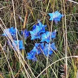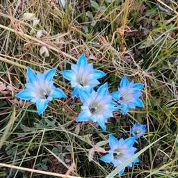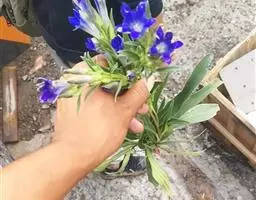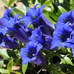 龙胆属植物花色艳丽,色彩丰富,有紫、白、蓝、黄白等多种颜色,适宜作为花坛、花镜或盆花。 龙胆最高不过四、五十厘米,大部份是矮小贴地丛生。一株上有许多分枝,花生于枝上顶端,成古钟形或漏斗形,有4-5个裂瓣,全缘的,也有细裂的成流海似的须。龙胆花在秋冬季一片枯黄的草丛中临风开放,显得分外朴实和幽静,龙胆开花一片片一簇簇,临风摇曳,显出一种淡雅、素静的美,因而成为著名的花卉。