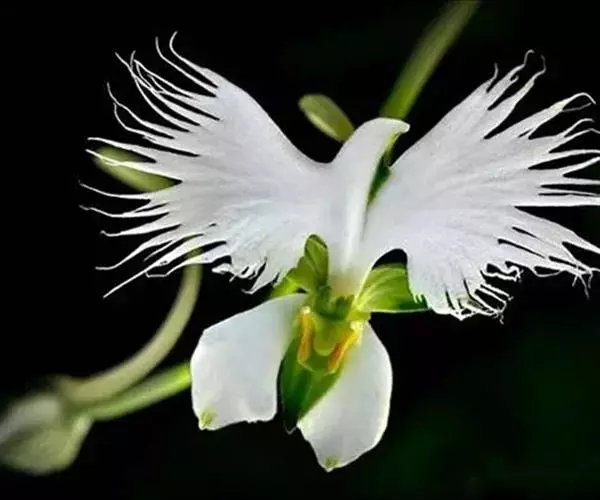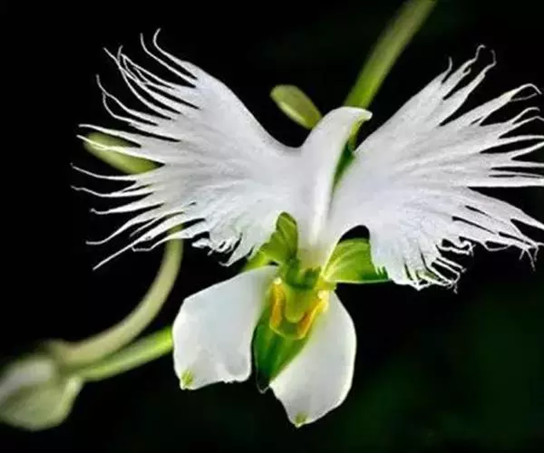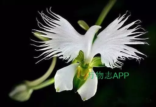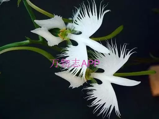 根稍粗厚,多少肉质。叶条形或舌状,长17-67厘米,宽1.3-3.2厘米,先端长渐尖,基部明显变窄,边缘有极细的锯齿,质软。花葶直立,高30-85厘米;总状花序或圆锥花序疏生多数花;花白色,常双生,逐一开放;花梗长6-12毫米,上具一明显的关节;花被片条形,均具3条脉,长20-23毫米,宽2-3毫米,外轮3片稍窄于内轮3片;雄蕊叉开,花丝长8.5-12毫米;花药长13毫米,多少呈丁字状,基部的尾状附属物长2.5-3毫米,先端极锐尖;子房每室具4-11枚胚珠(通常为7-8枚)。花果期7-10月。