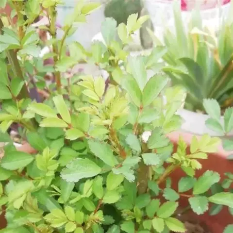 4、叶:为奇数羽状复叶;小叶3~7枚,卵形或长圆形;叶缘有锯齿,多数品种叶面平滑有光泽(有的品种精糙无光),多数品种初展叶时为紫红色,后逐渐变绿。