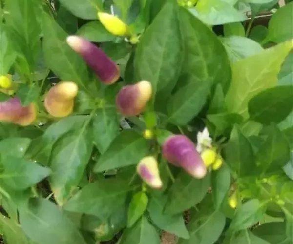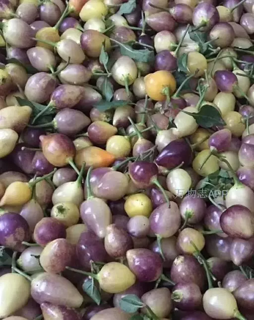果实下垂,截锥状圆方或多棱形,角圆滑,并有长短高矮之分,果实生于叶腋,果色由绿变红、白、黄、黑紫色等。