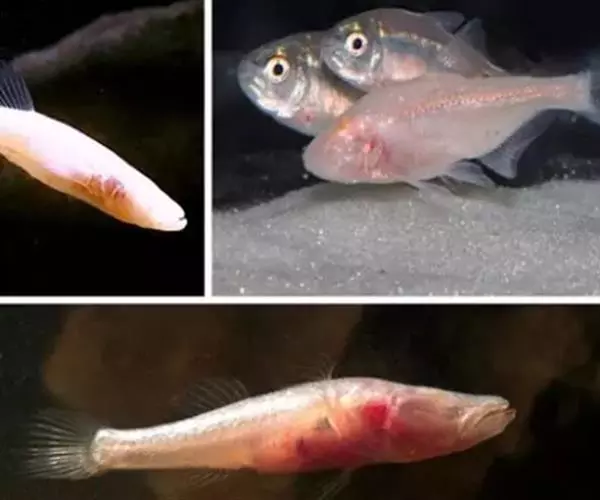 世界上有不少地方,在完全黑暗的洞穴里也同样生活着各种不同种类的鱼。例如北美的洞鲈鱼和古巴的盲须鳚都是有名的盲鱼。