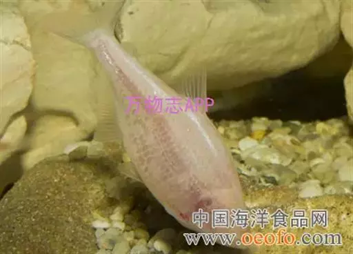盲鱼又名无眼鱼、墨西哥盲鱼。鱼体呈长形,稍侧扁,尾鳍叉形,体长约 8 厘米。盲鱼体色呈乳白色,各鳍与体色一致并透明。