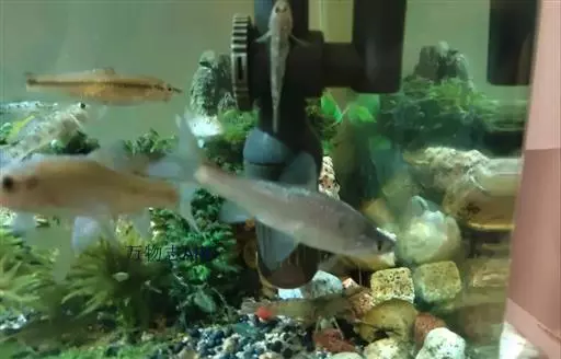 这是热带鱼中体色最具个性的鱼。由于它在地下山洞中生活,眼睛退化,其他感觉器却特别发达。盲鱼刚孵出的幼鱼是有眼睛的,当幼鱼长到 2 个月左右,眼睛才逐步退化。盲鱼虽然没有眼睛,但在水中不会撞到其他物体,而且捕食能力一点不差,只要投入食物,盲鱼就立即发现,并游过来吃。