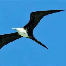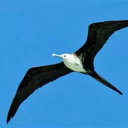 阿岛军舰鸟是军舰鸟科军舰鸟属的大型海鸟,全身黑色羽毛,喙大而锐,尾似燕,给人以强健的印象。主要以飞…