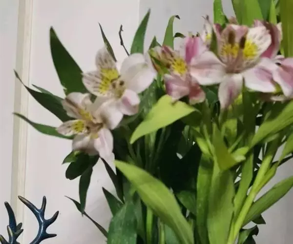 6、修剪:六出花盆栽常用12~15厘米盆,10月中旬盆栽,栽植深度3~5厘米,栽后浇透水,30天后长出叶芽。入冬后,新芽生长迅速,茎叶密生,影响基部花芽生长,需疏叶,去除细小的叶芽,保留粗壮的花芽,达到株矮、花多的目的。