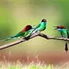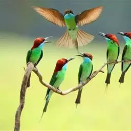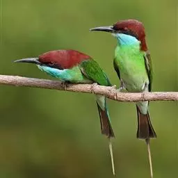 蓝颊蜂虎:是蜂虎科、蜂虎属的鸟类,共有2个亚种。体长27-33厘米,翼展46-49厘米,…