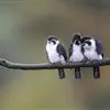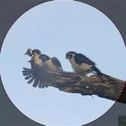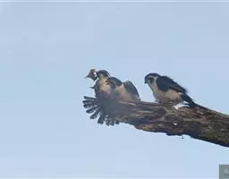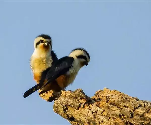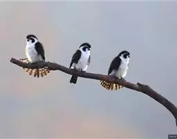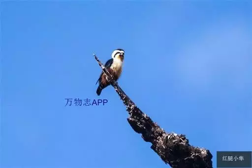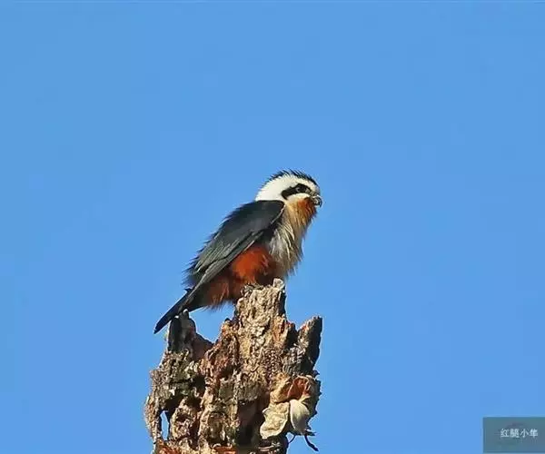 红腿小隼(学名:Microhierax caerulescens):属于隼形目隼科,几乎与麻雀一样大,是世界上最小的猛禽之一。有2个亚种,典型特征为前额为白色,眼睛上有一条宽阔的白色眉纹,往后经耳覆羽与上背的白色领圈相连,颊部和耳覆羽为白色,从眼睛前面开始有一条粗著的黑色贯眼纹经过眼睛斜向下到耳部。