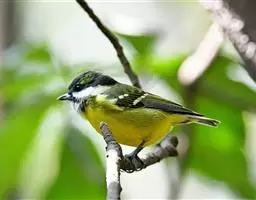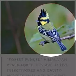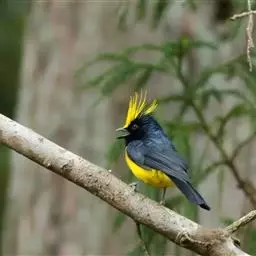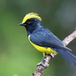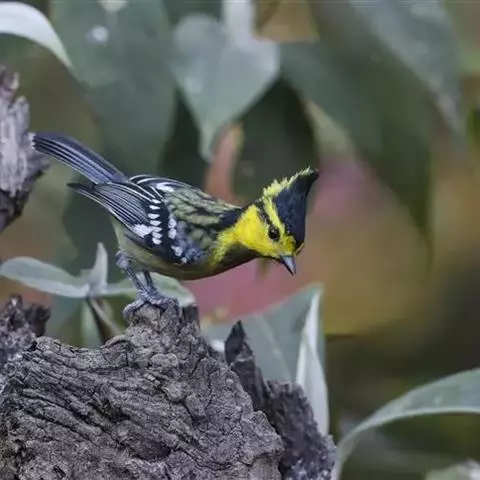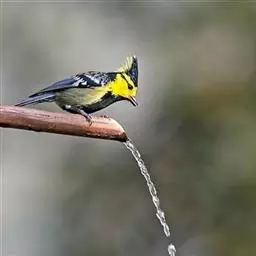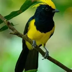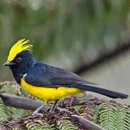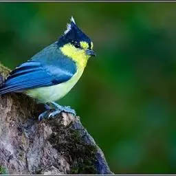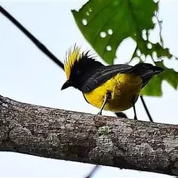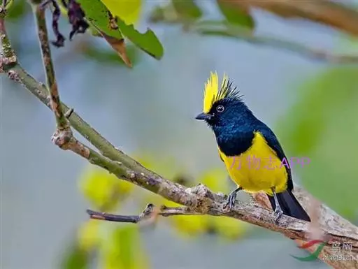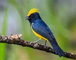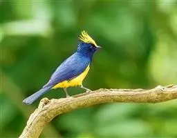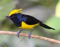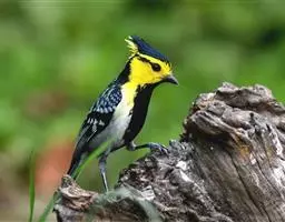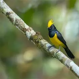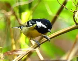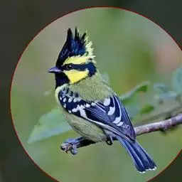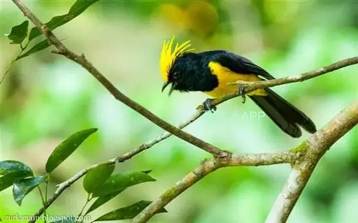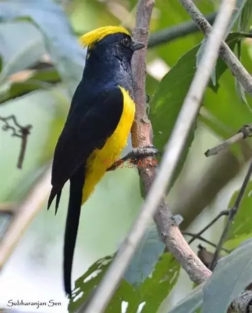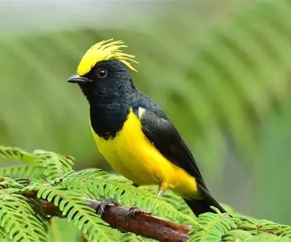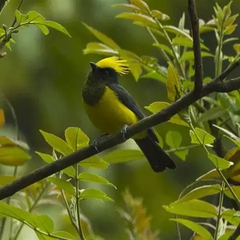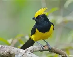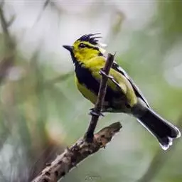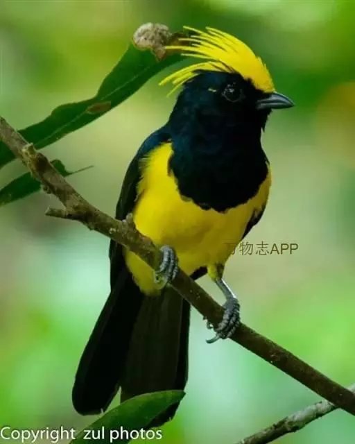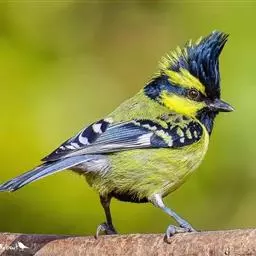冕雀(学名:Melanochlora sultanea):共有4个亚种。体长20-21厘米,体重34-49克。具蓬松的黄色长型冠羽。雌鸟似雄鸟,但喉及胸深橄榄黄色,上体沾橄榄色。不会被误认的体大的黄色及黑色山雀。混群栖于原始林及次生林的林冠层,以大型昆虫为食。分布于印度次大陆,中国的西南地区、中南半岛和东南沿海地区。