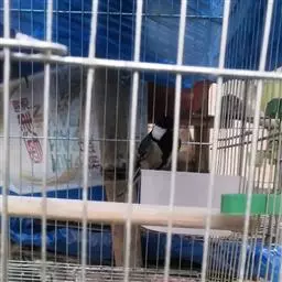 虹膜褐色功红褐色,黑色鸟喙的尖端上有一对上颌角。腿和脚是灰蓝色。