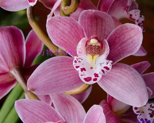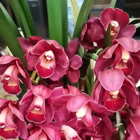 大花蕙兰又叫虎头兰、喜姆比兰和蝉兰。兰科、兰属植物。原产于印度、缅甸、泰国、越南和中国南部等地区的兰属(Cymbidium)中的一些附生性较强的大花种和主要以这些原种为亲本获得的人工杂交种。大花蕙兰,是对兰属中通过人工杂交培育出的、色泽艳丽、花朵硕大的品种的一个统称。兰属植物约48种,用来作杂交亲本的原生种有近20种,主要是大花的附生类以及少量的地生类。
