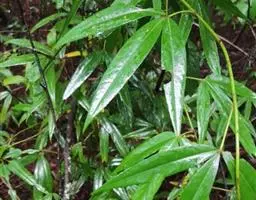 凤尾竹 Raeusch. ex Schult. ’Fernleaf’ R. A. Young)是禾本科,簕竹属孝顺竹的变种。植株较高大,杆高可达6米,竿中空,小枝稍下弯,下部挺直,绿色;竿壁稍薄;节处稍隆起,无毛;叶鞘无毛,纵肋稍隆起,背部具脊;叶耳肾形,边缘具波曲状细长繸毛;叶舌圆拱形,叶片线形,上表面无毛,下表面粉绿而密被短柔毛,小穗含小花,中间小花为两性;外稃两侧稍不对称,长圆状披针形,先端急尖;内稃线形,脊上被短纤毛,花药紫色,子房卵球形,羽毛状。成熟颖果未见。原产中国,华东、华南、西南以至台湾、香港均有栽培。凤尾竹喜温暖、湿润和阳光充足的环境,耐寒。宜土层深厚、肥沃、疏松的微酸性壤土。该种观赏价值较高,宜作庭院丛栽,也可作盆景植物。全草或根入药,味淡、微苦,性寒,有清热利湿、凉血止血、消肿解毒功效,可治痢疾、泄泻等多种病症。凤尾