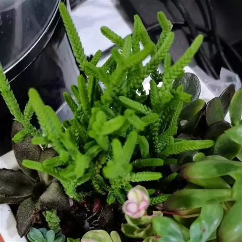 灯美人是景天科的园艺品种,多肉植物。叶片近柱状,丛生,在日照时间长、温差大的环境下会呈现橙粉色。
