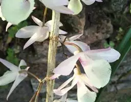 红花隔距兰 Garay):植株通常悬垂。茎细圆柱形,长达70厘米,粗3-4毫米,分枝或不分枝,…