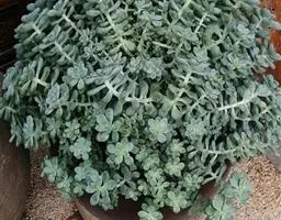 蓝黛莲是一种景天科厚叶草属植物。叶片呈略扁的圆柱形,排列成莲座状;颜色为灰绿色,…