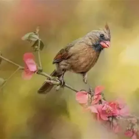 北朱雀,是燕雀科朱雀属鸟类。雄鸟额和头顶前部珠白色具窄的粉红色羽缘,…