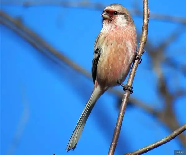 长尾朱雀:体长18厘米,体重16-26克。雄鸟额、颏和眼后为暗红色,…