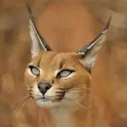 头部:缅因猫头大而圆,颧骨高,鼻梁长,稍凹陷,口呈方形、紧凑眼睛大, 缅因猫 椭圆形,眼色有绿色、金黄色、紫铜色等耳大基宽尖细,两耳间距宽,耳内有密生的长饰毛,并与体毛相衬。