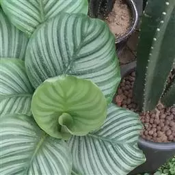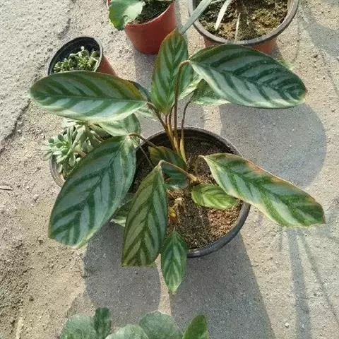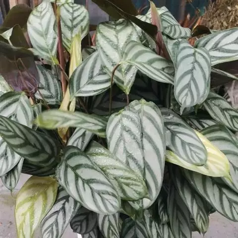 花叶竹芋:竹芋科,竹芋属匍匐状分枝草本植物,植株矮小,高可达40厘米,叶片长圆形、椭圆形至卵形,基…