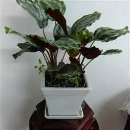 孔雀竹芋:竹芋科,肖竹芋属多年生常绿草本植物。植株挺拔株高可达60厘米。叶柄紫红色, 叶片薄革质,…