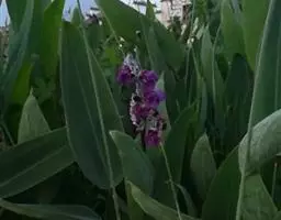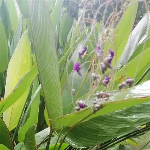 水竹芋为竹芋科多年生草本植物,植株高可达2米。叶互生,叶片卵形,叶色青绿,叶缘紫色,上被白粉,叶片…