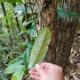 乔木,高达20米,胸径50厘米,大树的树皮纵深裂,厚达1厘米,块状剥落,小枝有皮孔甚多,枝、叶均无毛。叶革质,卵形,披针形或长椭圆形,长5-13厘米,宽1.5-5.5厘米,顶部长渐尖,常向一侧弯斜,基部一侧较短或甚偏斜,且稍沿叶柄下延,压干后常一侧叠褶,有时兼有两侧对称的叶,全缘或在顶部有少数浅裂齿,中脉在叶面至少下半段稍凸起,其余平坦,很少裂缝状浅凹陷,侧脉每边8-11条,甚纤细,当年生叶两面同色,二年生叶的叶背常带淡薄的银灰色;叶柄长7-10毫米,稀更长。