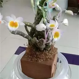 通常选用四壁多孔的塑料或陶瓷花盆,用碳根、泥炭藓、树皮块、木炭块等作盆栽材料。根据兰苗的大小,选择不同规格的花盆,但不宜用大盆栽小苗口上述栽好材料在使用前必需在清水中浸泡1天以上备用。盆底要多垫大瓦片或碎砖块,深度至盆底约1/3处,然后将兰苗放于盆中央,并在一旁插一细竹竿以固定兰苗,再填入其他栽培材料,注意根与根之间用材料隔开。
