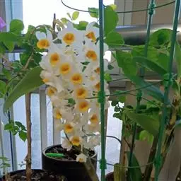 报春石斛,是兰科石斛属植物,茎下垂,厚肉质,圆柱形,不分枝,具多数节;叶纸质互生于整个茎上,…