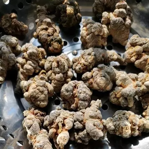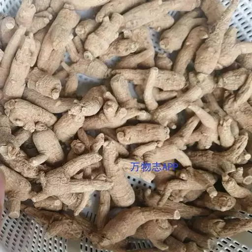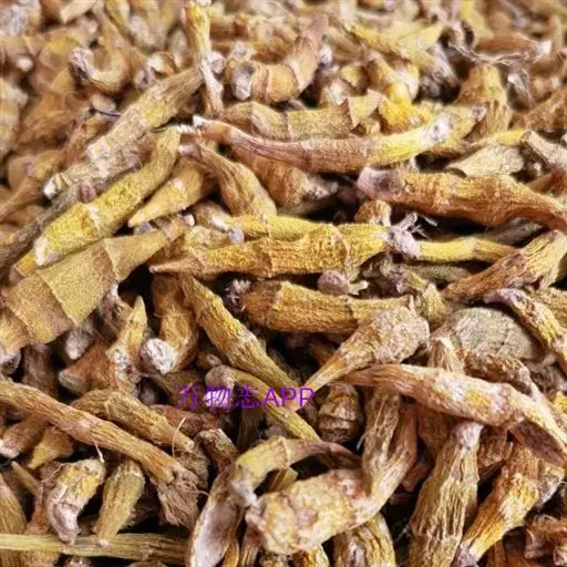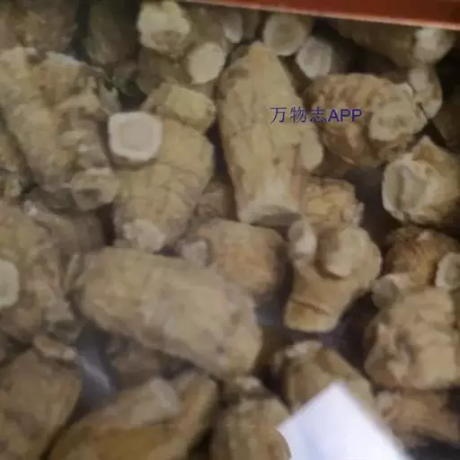 根茎长圆柱形或纺锤形,芦头多已除去;表面呈土黄色或黄白色,皮纹粗糙。横长皮孔粗而短;质地较脆而疏松,有放射状裂隙,皮部红棕色小点不明显;味淡,有甜味或豆腥味。