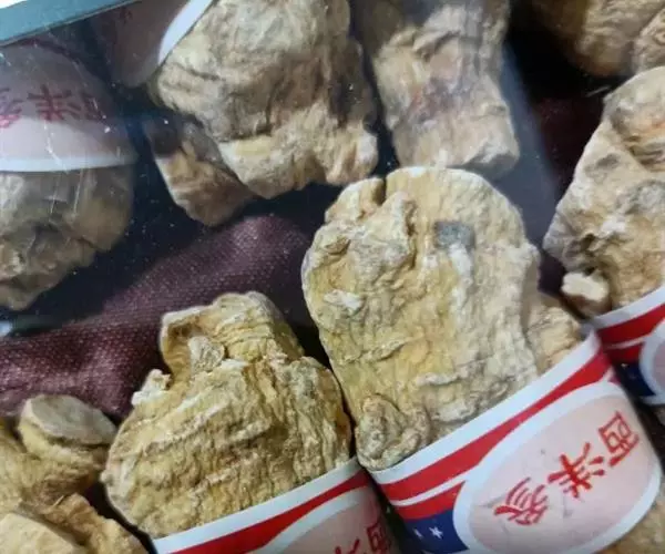 西洋参 劣质西洋参为同科属,但已人工提取了有效成分,再经干燥后伪充正品西洋参。