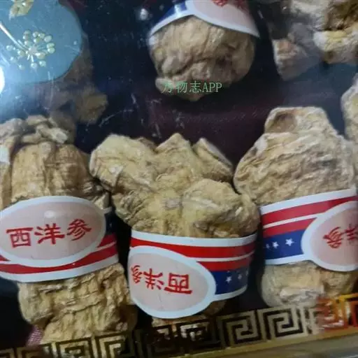 多年生草木, 西洋参 主根呈圆形或纺锤形,表面浅黄色或黄白色,色泽油光,皮纹细腻,质地饱满而结实,断切面干净,呈现较清晰的菊花纹理,参片甘苦味浓,透喉,全体无毛。根肉质,纺锤形,有时呈分歧状。根茎短。茎圆柱形,长约25cm,有纵条纹,或略具棱。