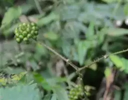 西洋参 总花梗由茎端叶柄中央抽出,较叶柄稍长或近于等长;伞形花序,花多数,花梗细短,基部有卵形小苞片1枚;萼绿色,钟状,先端5齿裂,裂片钝头,萼筒基部有三角形小苞片1枚;花瓣5,绿白色,矩圆形;雄蕊5,花丝基部稍宽,花药卵形至矩圆形;雌蕊1,子房下位,2室,花柱2,上部分离呈叉状,下部合生;花盘肉质环状。