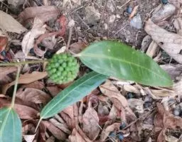 浆果扁圆形,成对状,熟时鲜红色,果柄伸长。