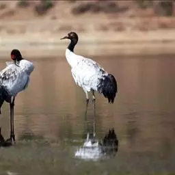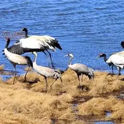 黑颈鹤:是鹤科、鹤属的大型涉禽,体长110-120厘米,体重4-6千克。颈、脚甚长,通体羽毛灰白色,…